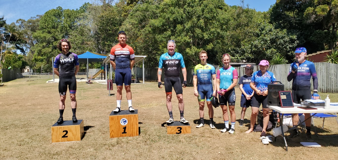 Division 1 Winners L-R Dan Wilson 2nd & F/T (HWCC), 1st Kurt Hindmarsh (Uni), Jason McNulty 3rd (HWCC), Korey Boddington (SCCC) 4th, Leah Roberts (HWCC) First Unplaced Lady